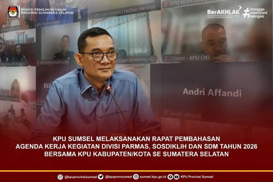 #Repost KPU Provinsi Sumatera Selatan #Temanpemilih, Pentingnya peran generasi Z pada pendidikan pemilih, hal ini disampaikan Anggota Divisi Sosialisasi Pendidikan Pemilih, Partisipasi Hubungan Masyarakat dan Sumber Daya Manusia, Prahara Andri Kusuma dalam rapat pembahasan agenda kerja kegiatan Parhumas dan SDM Tahun 2026 bersama KPU Kabupaten/Kota melalui Zoom Meeting. Selasa (20/1/2026). Melalui rapat ini, sosialisasi juga dapat dilakukan dengan mengoptimalisasi Kanal Digital dan Media Sosial seperti membuat konten ataupun podcast tentang informasi Kepemiluan. Selain itu juga guna memperkuat kelembagaan pasca Pemilu dan Pilkada, diperlukan evaluasi dan pengembangan kemampuan Sumber Daya Manusia di Lingkungan KPU Wilayah Sumatera Selatan. Hadir pada rapat ini Kasubbag Parmas KPU Sumsel, Kasubbag SDM KPU Sumsel dan Divisi Sosdiklih, Parmas dan SDM KPU Kabupaten/Kota se Sumatera Selatan. #KPUMelayani @kpu_ri ....