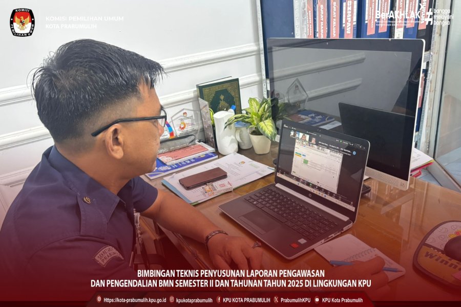 #Temanpemilih, Pada Hari Selasa, Tanggal 20 Januari 2026 Pukul 09.00 WIB-Selesai. Bertempat di KPU Kota Prabumulih. Plt. Kasubbag Keuangan, Umum, dan Logistik Bapak Nizar Patriot mengikuti Kegiatan Bimbingan teknis penyusunan laporan pengawasan dan pengendalian BMN Semester II dan Tahunan Tahun 2025 di Lingkungan KPU. Kegiatan ini dilaksanakan oleh KPU Republik Indonesia secara daring melalui Aplikasi Zoom. #KPUMelayani Find Us On : Facebook : KPU KOTA PRABUMULIH Instagram : kpukotaprabumulih Tiktok : KPU Kota Prabumulih Youtube : KPU KOTA PRABUMULIH Twitter : PrabumulihKpu Website : https://kota-prabumulih.kpu.go.id/ Alamat : Jl. Jend. A. Yani No.09, Prabu Jaya, Prabumulih Timur ....