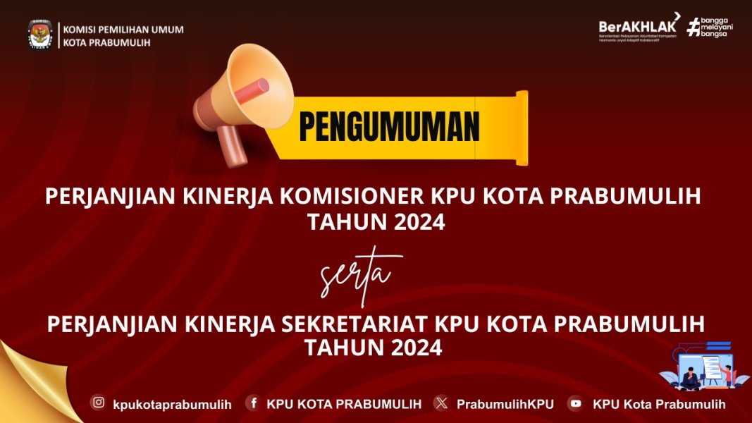 #TemanPemilih, Berikut kami sampaikan Perjanjian Kinerja Komisioner KPU Kota Prabumulih Tahun 2024 dan Perjanjian Kinerja Sekretariat KPU Kota Prabumulih Tahun 2024.