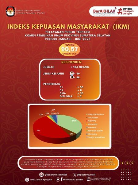 #Repost KPU Provinsi Sumatera Selatan #Temanpemilih berikut Indeks Kepuasan Masyarakat (IKM) Pelayanan Publik Terpadu KPU Provinsi Sumatera Selatan Periode Januari-Juni 2025