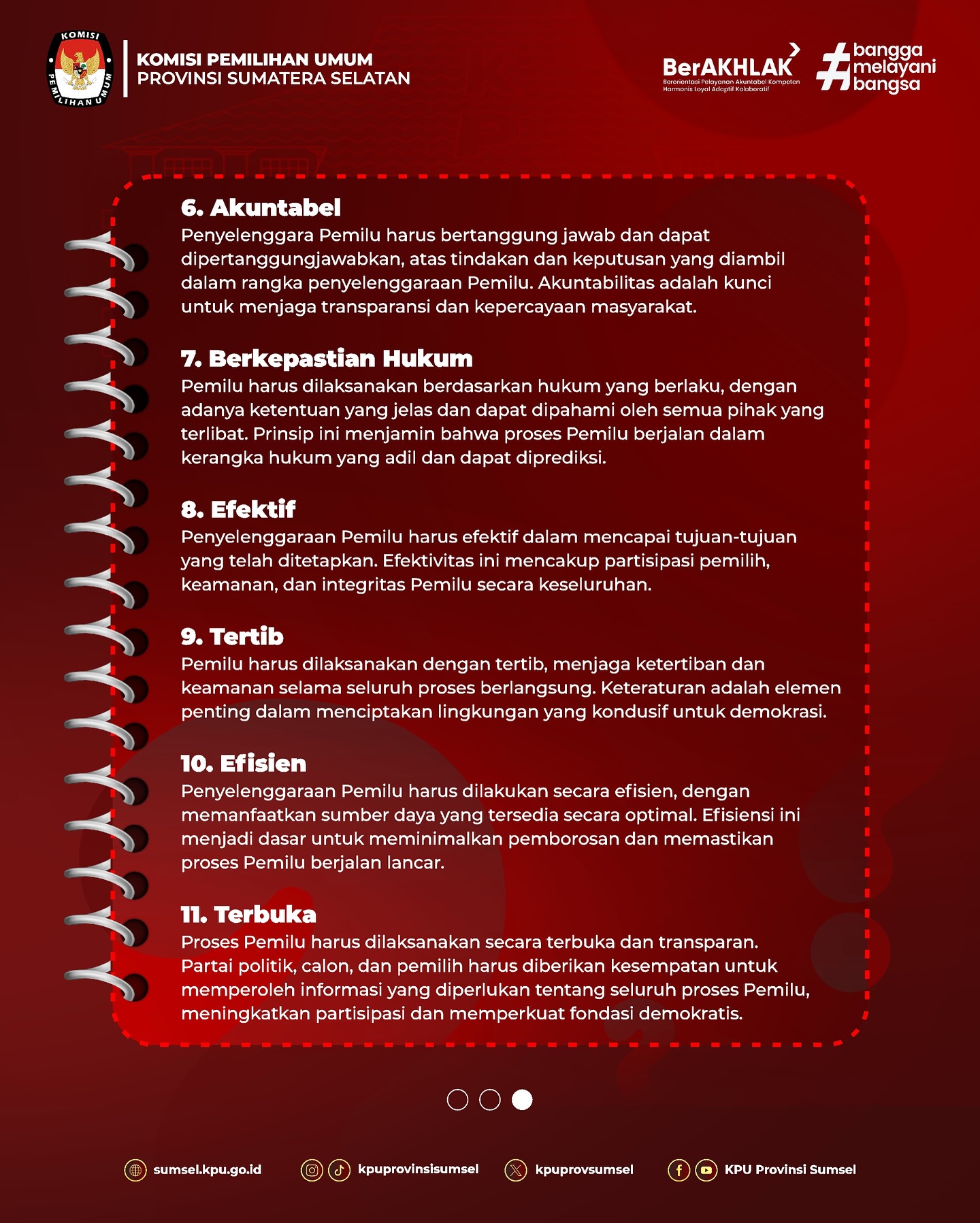 #Repost KPU Provinsi Sumatera Selatan #Temanpemilih kamu harus tahu tentang 11 Prinsip Dasar dalam penyelenggaraan Pemilu di Indonesia berdasarkan amanat Undang-Undang Nomor 7 Tahun 2017