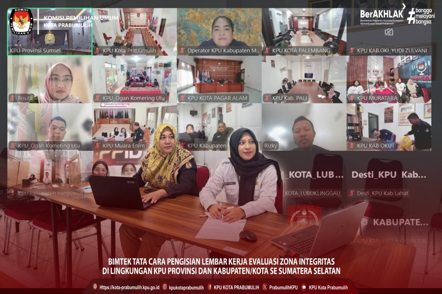 #TemanPemilih, Pada hari Rabu, Tanggal 12 November 2025 Pukul 10.00 WIB - Selesai, Bertempat di Ruang Aula KPU Kota Prabumulih, Staff Subbag Teknis dan Hukum KPU Kota Prabumulih mengikuti kegiatan Bimbingan Teknis Tata Cara Pengisian Lembar Kerja Evaluasi Zona Integritas di Lingkungan KPU Provinsi dan Kabupaten/Kota se sumatera selatan. Kegiatan ini dilaksanakan oleh KPU Provinsi Sumatera Selatan secara daring melalui Aplikasi Zoom.