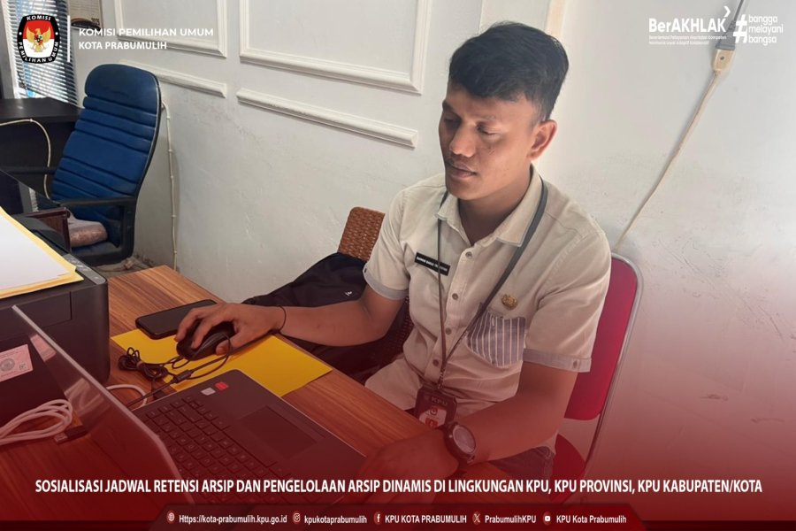 #Temanpemilih, Pada Hari Jum'at, Tanggal 19 Desember 2025 Pukul 08.00 WIB-Selesai. Bertempat di Sekretariat KPU Kota Prabumulih, Kasubbag Keuangan, Umum dan Logistik ibu Iis Sugianti didampingi staff Subbag Keuangan, Umum dan Logistik mengikuti kegiatan Sosialisasi Jadwal Retensi Arsip dan Pengelolaan Arsip Dinamis di Lingkungan KPU, KPU Provinsi, KPU Kabupaten/Kota. Kegiatan ini dilaksanakan oleh KPU Republik Indonesia secara daring melalui Aplikasi Zoom.
