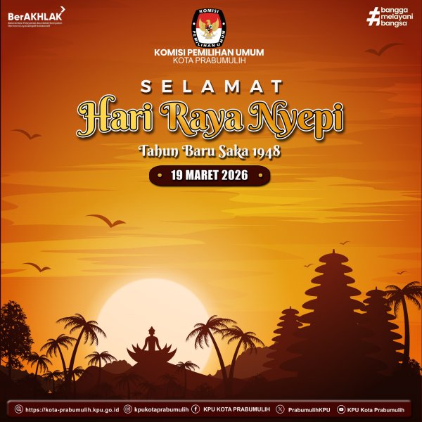 #TemanPemilih, segenap jajaran KPU Kota Prabumulih mengucapkan Selamat Hari Raya Nyepi Tahun Baru Saka 1948 bagi yang merayakan.
