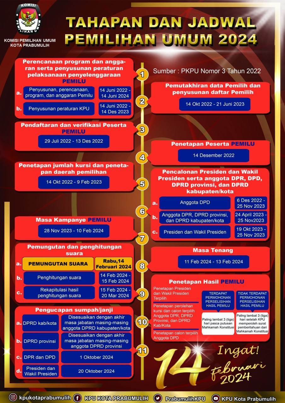 Berikut ini Jadwal dan Tahapan Penyelenggaraan Pemilu 2024 yang didasarkan pada PKPU No.3 Tahun 2022.