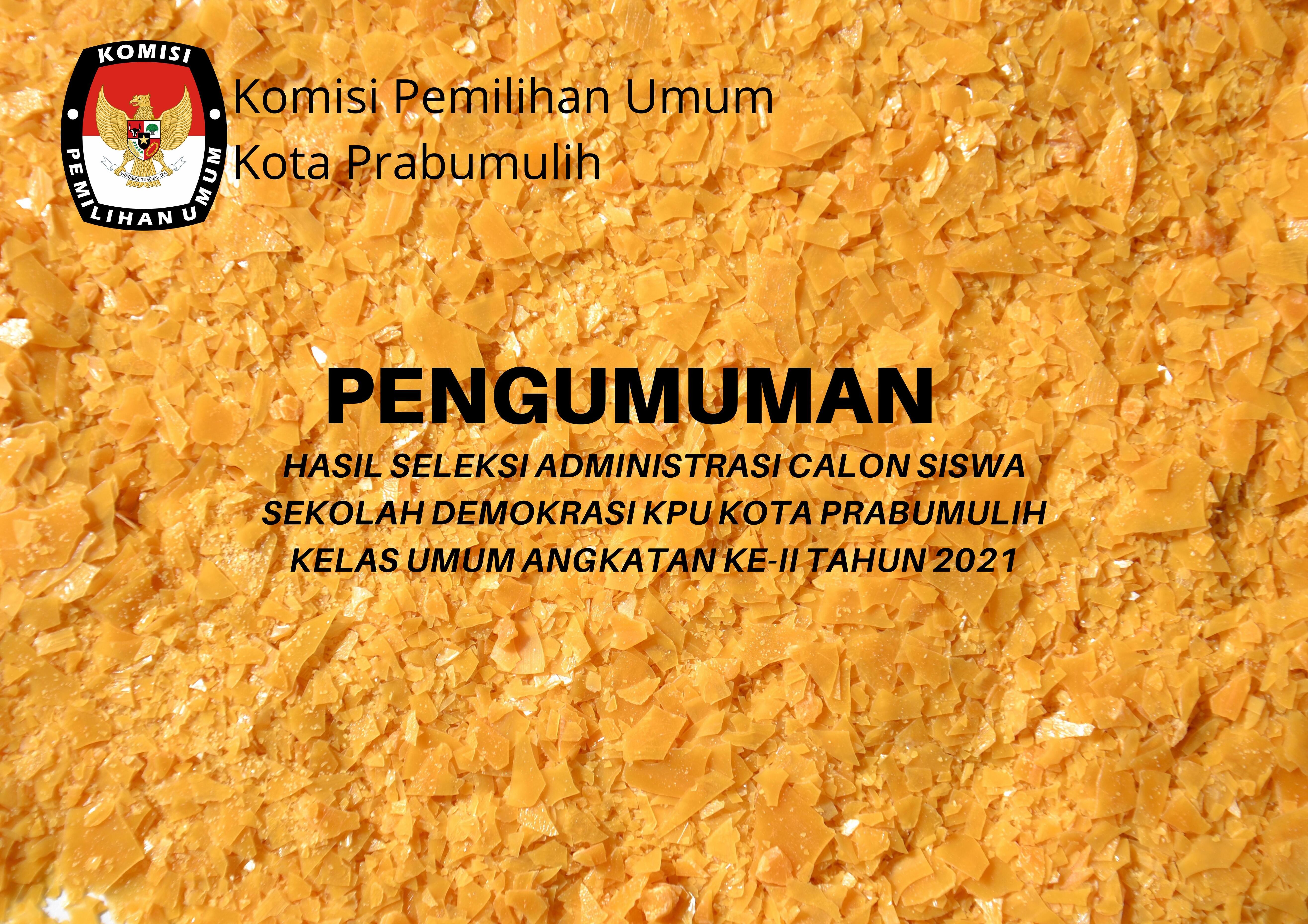 Pengumuman Hasil Seleksi Administrasi Calon Siswa Sekolah Demokrasi untuk Kelas Umum Angkatan Ke-II Tahun 2021 Kamis, 09 September 2021 00:00 69 Pengumuman Hasil Seleksi Administrasi Calon Siswa Sekolah Demokrasi KPU Kota Prabumulih Kelas Umum Angkatan Ke-II Tahun 2021 dapat diunduh disini Untuk Jadwal Wawancara bisa dilihat disini Bagikan: Telah dilihat 69 kali