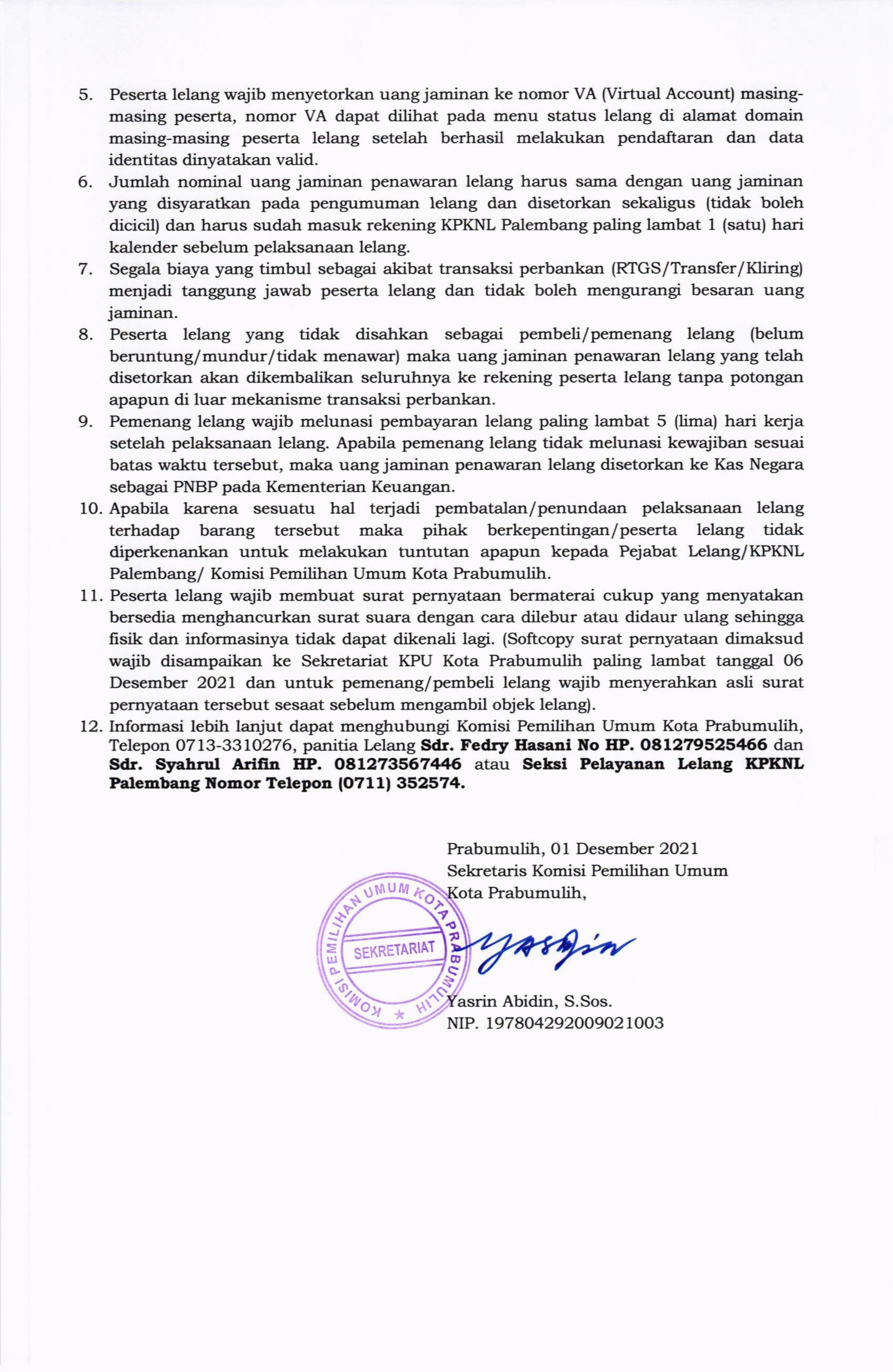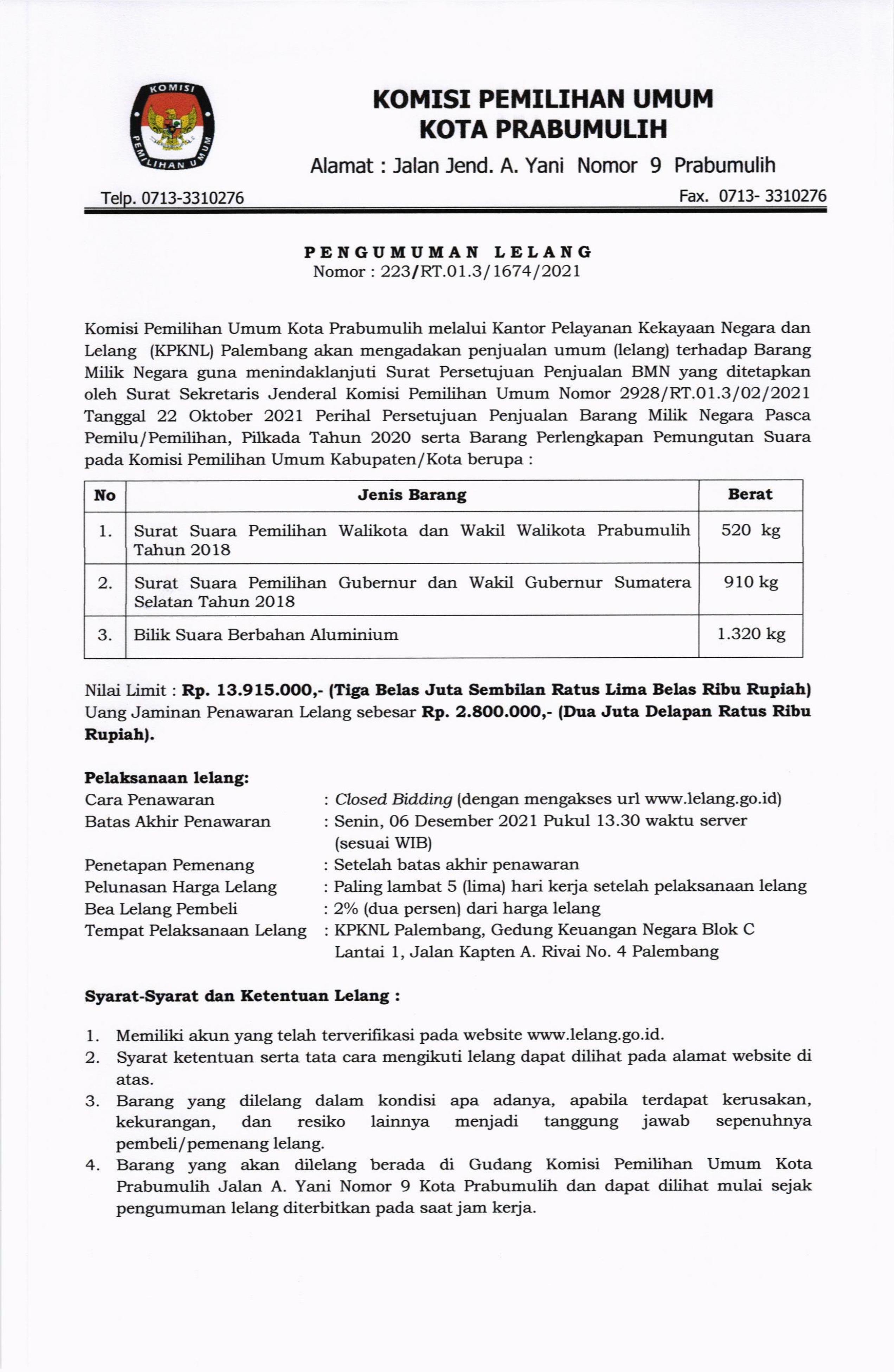 Pengumuman Lelang Barang Eks Pilkada 2018