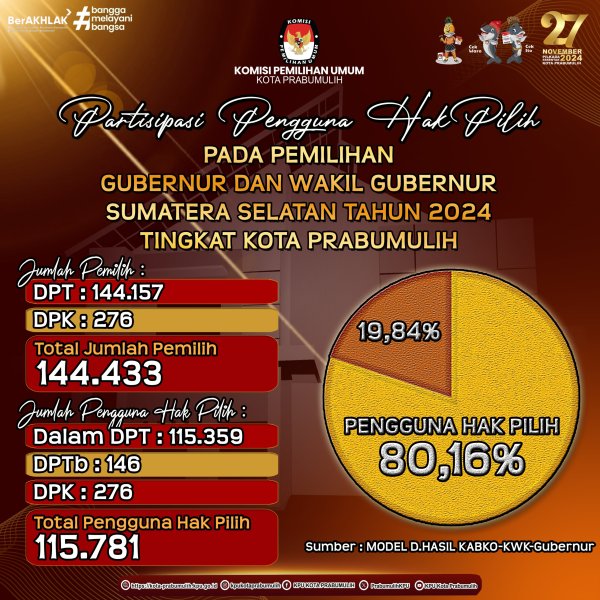 Tingkat Partisipasi Masyarakat Dalam Pemilihan Calon Gubernur dan Wakil Gubernur Sumatera Selatan Tahun 2024 Tingkat Kota Prabumulih