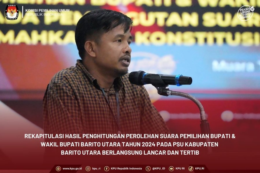 #Repost KPU Republik Indonesia #TemanPemilih, Pemungutan Suara Ulang (PSU) menjadi pelajaran penting sebagai proses demokratisasi dan KPU Kabupaten Barito Utara berkomitmen melaksanakan sebaik-baiknya. Hal tersebut disampaikan Idham Holik pada sesi akhir Rapat Pleno Terbuka Rekapitulasi Hasil Penghitungan Perolehan Suara Pemilihan Bupati & Wakil Bupati Barito Utara Tahun 2024 pada PSU tindak lanjut putusan Mahkamah Konstitusi, di gedung pertemuan Balai Antang Barito Utara, Kalimantan Tengah, Sabtu (9/8/2025) Idham menilai PSU Kabupaten Barito Utara telah berjalan sesuai aturan dan terbukti dengan proses rekapitulasi yang berjalan lancar dari PPK sampai tingkat KPU Kabupaten Barito Utara serta diikuti oleh para saksi. Turut hadir Pj Bupati Barito Utara Indra Gunawan, Ketua KPU Provinsi Kalimantan Tengah Sastriadi. Rapat Pleno dipimpin oleh Ketua KPU Kabupaten Barito Utara Siska Dewi Lestari dan didampingi Anggota KPU Kabupaten Barito Utara serta jajaran Sekretariat. #KPUMelayani #PilkadaSerentak2024