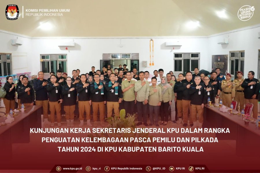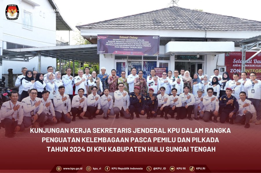 Kunjungan kerja Sekretaris Jenderal di KPU Kabupaten Hulu Sungai Tengah ini juga dilakukan dalam rangka memastikan kesiapan seluruh jajaran sekretariat dalam melaksanakan aktivitas pasca Pemilu dan Pilkada Tahun 2024 seperti Pemutakhiran Data Pemilih Berkelanjutan, Sosialisasi Pendidikan Pemilih, pelaporan keuangan dan penataan arsip.