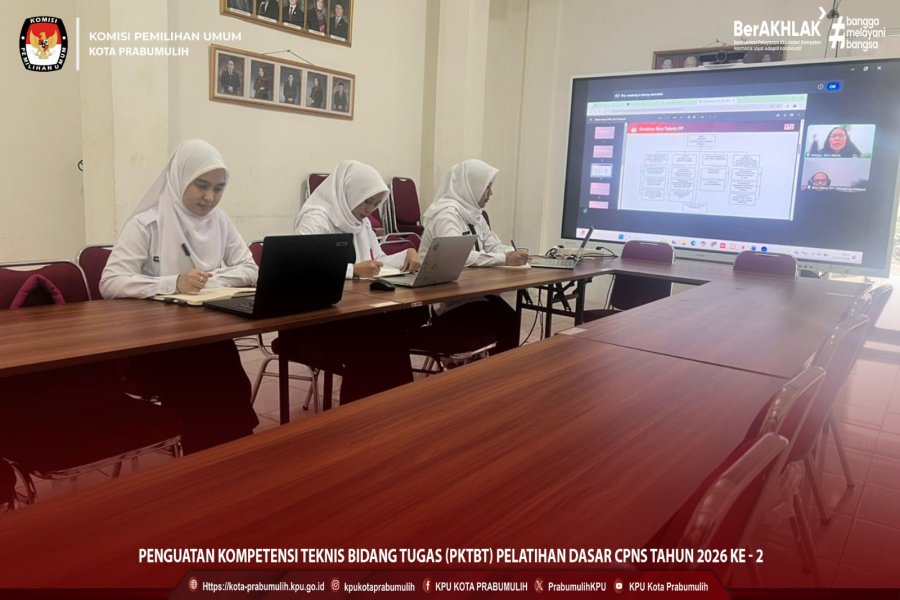 #Temanpemilih, Pada Hari Selasa s.d Kamis, 10-12 Maret 2026 Pukul 08.00 WIB-Selesai. Bertempat di Ruang Aula KPU Kota Prabumulih. sebanyak 3 (tiga) orang Calon Pegawai Negeri Sipil yang bertugas di Sekretariat KPU Kota Prabumulih mengikuti Kegiatan Penguatan Kompetensi Teknis Bidang Tugas (PKTBT) Pelatihan Dasar CPNS Tahun 2026 Hari Ke 3. Kegiatan ini dilaksanakan oleh KPU Republik Indonesia secara daring melalui Aplikasi Zoom.