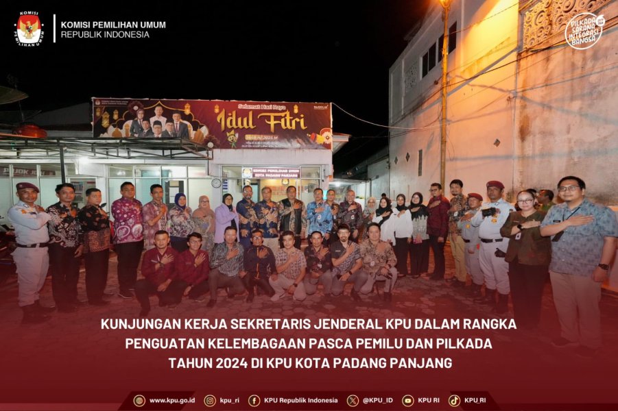 Pesan ini disampaikan Sekretaris Jenderal KPU, Bernad Dermawan Sutrisno dalam kunjungan kerja penguatan kelembagaan pasca Pemilu dan Pilkada Tahun 2024 di KPU Kota Padang Panjang pada Jum'at, (11/7/25).