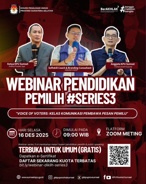 ???? Terbuka untuk umum, Daftar sekarang juga, dapatkan materi pendidikan pemilih, publis speaking dan e-sertifikat.