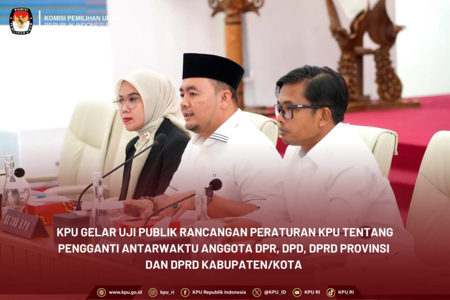 Hal ini disampaikan Ketua KPU Mochammad Afifuddin bersama Anggota KPU Iffa Rosita dan Idham Holik saat membuka sekaligus menyampaikan sambutan Uji Publik Rancangan Peraturan KPU Tentang Penggantian Antarwaktu Anggota Dewan Perwakilan Rakyat, Dewan Perwakilan Daerah, Dewan Perwakilan Rakyat Daerah Provinsi, dan Dewan Perwakilan Rakyat Daerah Kabupaten/Kota, di Ruang Sidang Utama KPU, secara luring dan daring, Selasa (24/6/2025).