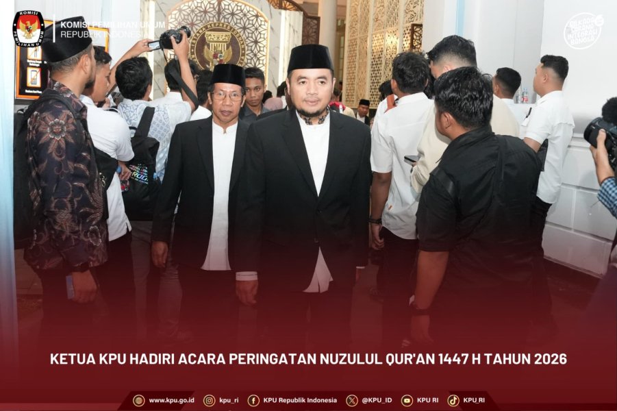 #Repost KPU Republik Indonesia #TemanPemilih, Ketua KPU Mochammad Afifuddin menghadiri acara Peringatan Nuzulul Qur'an 1447 H Tahun 2026 di Istana Negara, Jakarta, Selasa (10/3/2026).