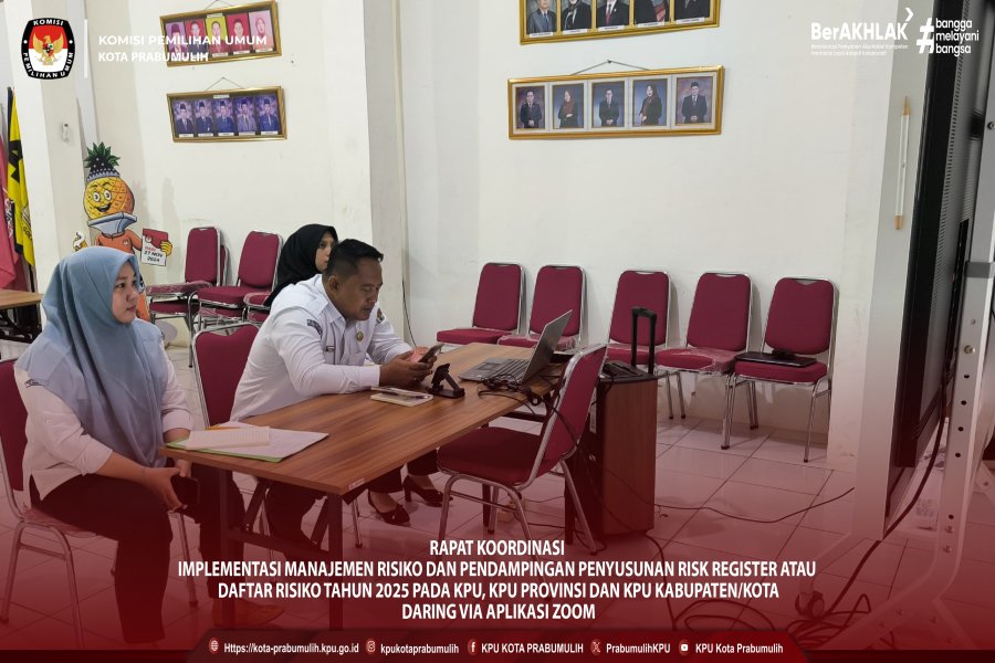 Hal ini disampaikan Ketua KPU Mochammad Afifuddin yang hadir secara daring, bersama Anggota KPU Iffa Rosita, saat membuka Rapat Koordinasi Implementasi Manajemen Risiko dan Pendampingan Penyusunan Risk Register atau Daftar Risiko Tahun 2025 Pada KPU, KPU Provinsi dan KPU Kabupaten/Kota, Kamis (12/06/2025).