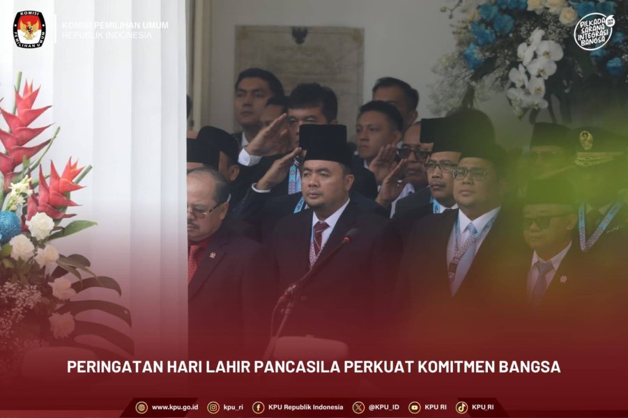 #Repost KPU Republik Indonesia #TemanPemilih, Ketua KPU Mochammad Afifuddin hadir pada Upacara Peringatan Hari Lahir Pancasila Tahun 2025 yang berlangsung di Gedung Pancasila, Jakarta, Senin (2/6/2025).