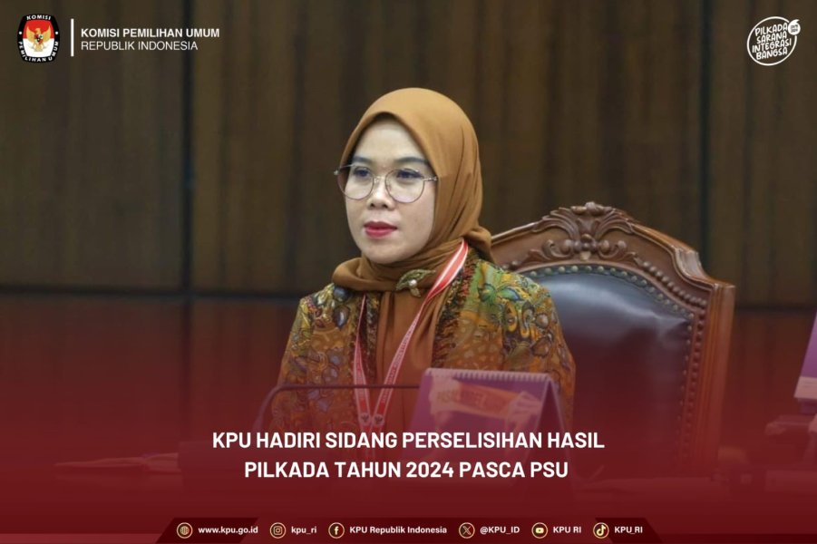 #Repost KPU Republik Indonesia #TemanPemilih, KPU hadir pada Sidang Perselisihan Hasil Pemilihan Kepala Daerah Tahun 2024 pasca PSU, dengan agenda Sidang Pengucapan Putusan/Ketetapan.