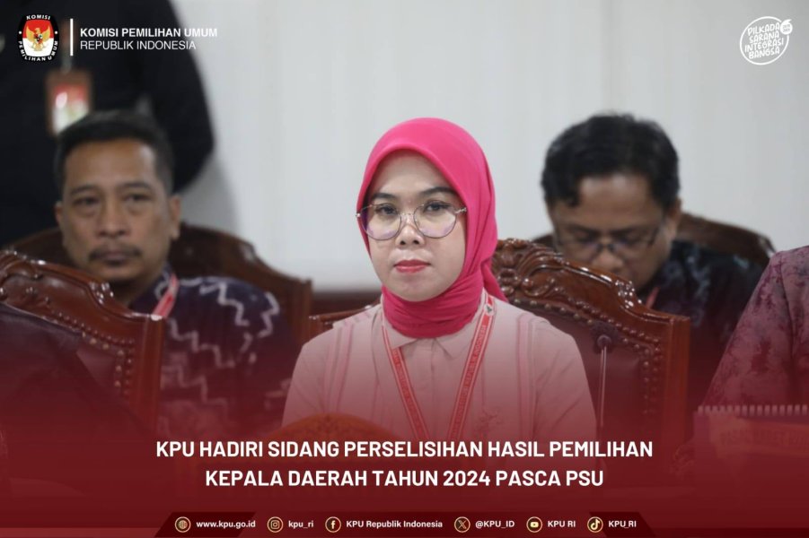 #Repost KPU Republik Indonesia #TemanPemilih, KPU hadir pada Sidang Perselisihan Hasil Pemilihan Kepala Daerah Tahun 2024 pasca PSU, dengan agenda mendengarkan jawaban Termohon, Pihak Terkait dan Keterangan Bawaslu, dan Pengesahan Alat Bukti.