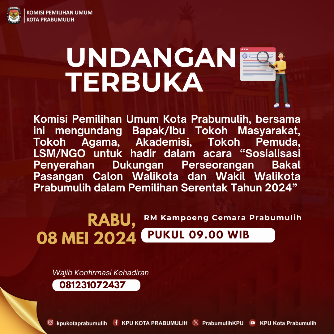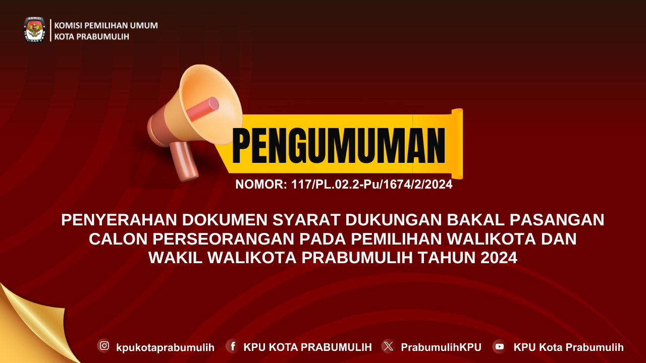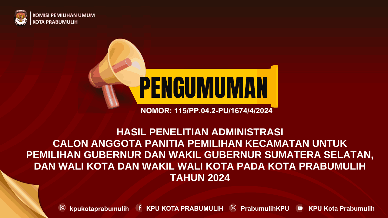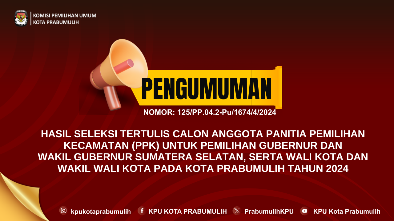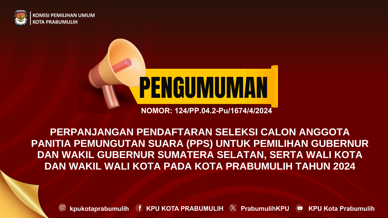 PERPANJANGAN PENDAFTARAN SELEKSI CALON ANGGOTA PANITIA PEMUNGUTAN SUARA (PPS) UNTUK PEMILIHAN GUBERNUR DAN WAKIL GUBERNUR SUMATERA SELATAN, SERTA WALI KOTA DAN WAKIL WALI KOTA PADA KOTA PRABUMULIH TAHUN 2024
