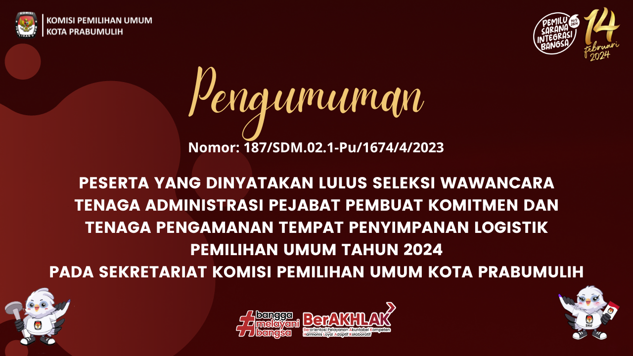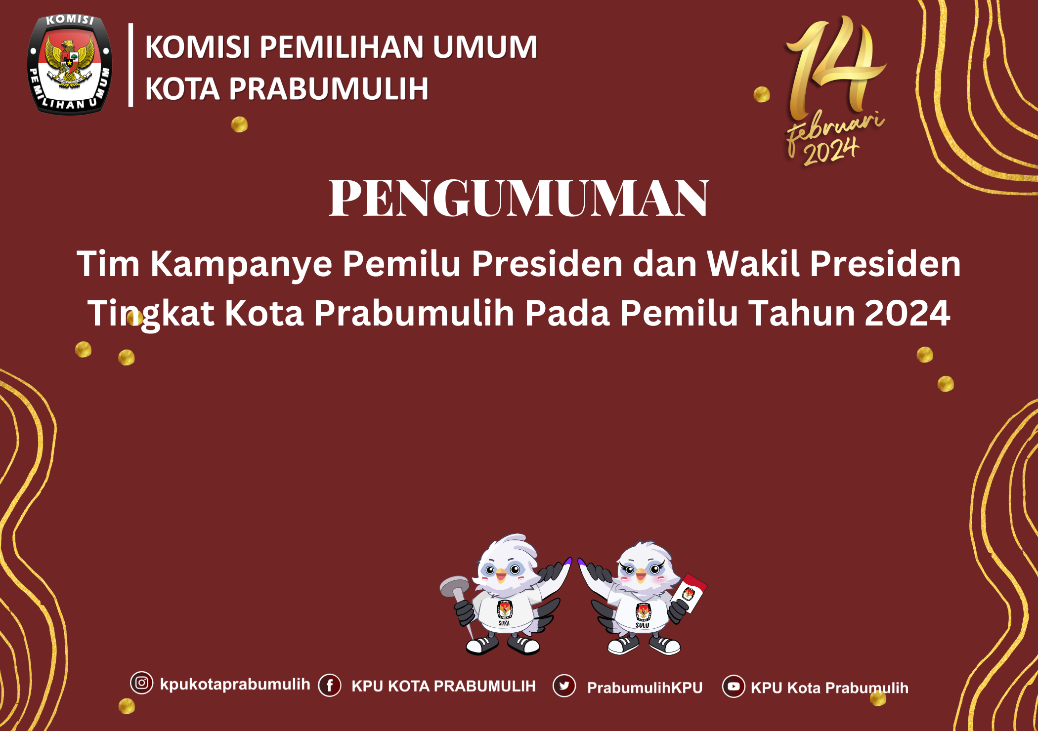 Berikut kami umumkan Tim Kampanye Pemilu Presiden dan Wakil Presiden Tingkat Kota Prabumulih pada Pemilu Tahun 2024, sebagai berikut :