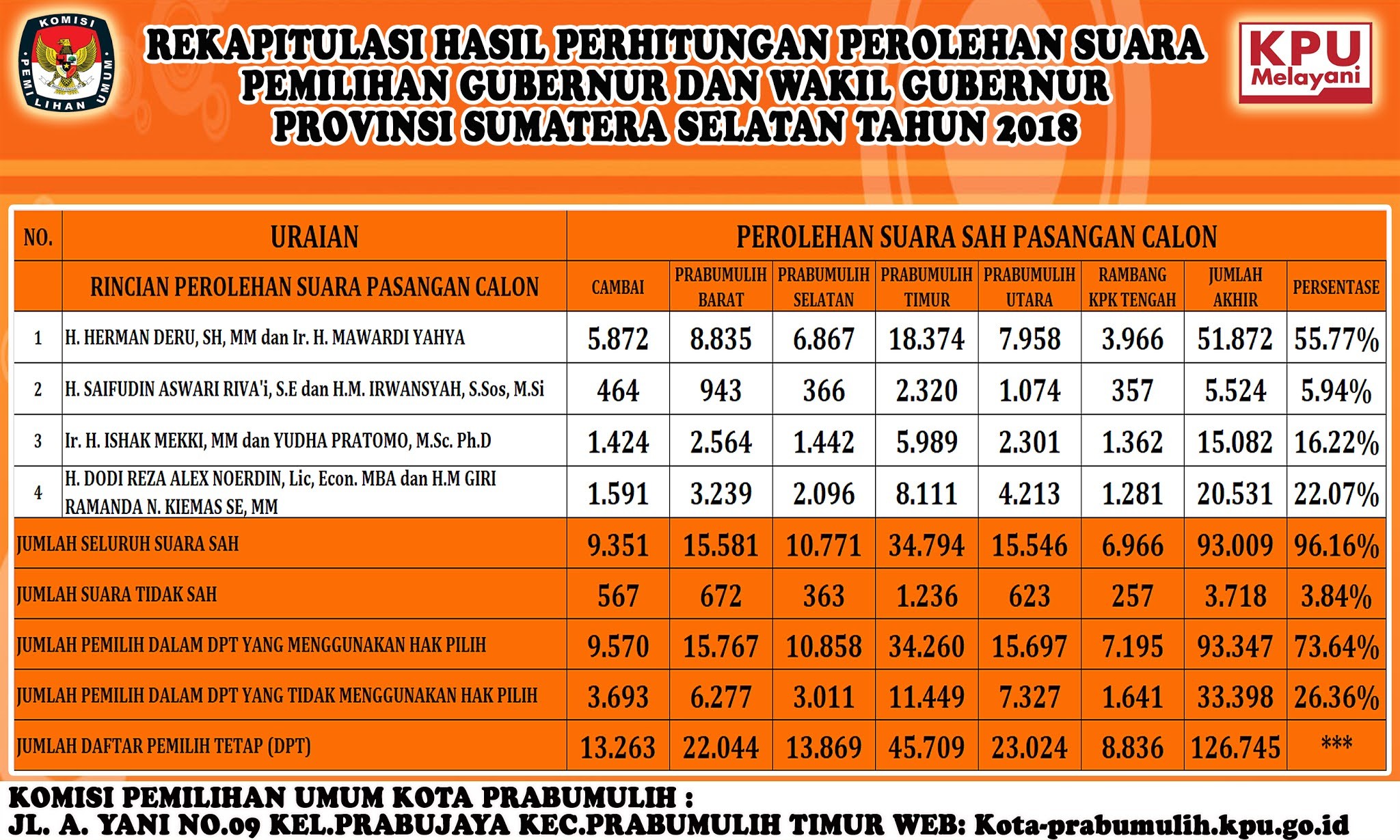 Perolehan Suara Gubernur Pilkada 2018